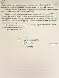 Депутат просит генпрокурора провести прокурорскую проверку силами управления по ЦФО по факту несоблюдения столичными властями положенных сроков создания согласительной комиссии.