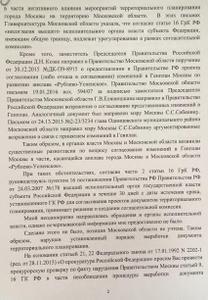 Как отмечает депутат, «в органах власти Москвы и Московской области возникли существенные разногласия по вопросу согласования изменений в Генплан Москвы в части, касающейся анклава города Москвы в Московской области «Рублево-Успенское». При таких обстоятельствах, подчеркивает Клычков, городские власти должны были создать согласительную комиссию, но не сделали этого.