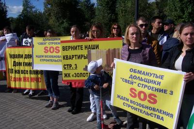 Митинг проводился совместно с инициативными группами, практически всех «замороженных» объектов: строительная компания «Фон» - ЖК «МЧС», ЖК «Молодежный», ЖК «Симфония», ЖК «Царицынский бугор»; строительная компания «Свей» - ЖК «Золотая середина», «68 квартал» и др. В акции протеста приняли участие более 350 человек.