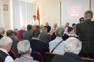 Затем с докладом о работе за период с апреля 2016-го по февраль 2017-го года выступил первый секретарь Кемеровского областного Комитета КПРФ Н.П. Мухин. Он отметил, что коммунисты Кузбасса в своей деятельности руководствовались решениями 15-го и 16-го Съездов КПРФ, пленумов ЦК и ЦКРК, другими партийными документами. Основной упор в докладе был сделан на организационно-партийную составляющую и 100-летний юбилей Великой Октябрьской социалистической революции. За отчётный период были созданы шесть новых городских и районных партийных организаций, а партия за год пополнилась почти двумястами вступившими в ряды КПРФ, средний возраст которых не превышает 40 лет. Создан организационный Комитет по празднованию 100-летнего юбилея Великого Октября и намечен план действий по празднованию, в который вошли автопробеги, показ телевизионного фильма по областному телевидению, посвящённого этой знаменательной дате, концерты, митинги, круглые столы и многое другое.