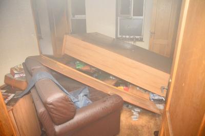 На месте преступления обнаружены явные признаки преднамеренного поджога: мебель свалена в одну кучу, видны следы полива ее бензином, есть разбитые бутылки и т.п.