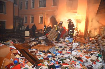 По словам столичных пожарных, которые принимали участие в ликвидации пожара, помещение было подожжено одновременно в трех местах.