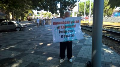 Краснодар снова накрыло волной одиночных пикетов гражданских активистов, которые требуют отставки действующего мэра города В. Евланова за системные провалы в управлении городом. На плакатах пикетирующих были лозунги с требованием призвать к ответу Евланова за плохие дороги, фактическое банкротстсова Краснодара и многое другое. Одновременно часть пикетирующих выступила в поддержку действующего депутата Государственной Думы РФ, секретаря ЦК КПРФ С.П. Обухова. Тысячи людей видели, а очень многие многие активно поддержали требования пикетирующих.