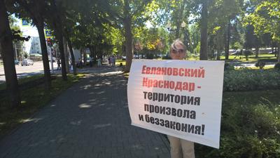 Напомним, что в последнее время гражданские активисты по всему городу стоят в одиночных пикетах с требованием отставки главы Краснодара В. Евланова за многочисленные управленческие провалы в деятельности.