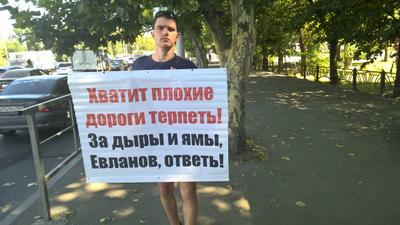 В Краснодаре гражданские активисты вышли в одиночные пикеты с плакатами «Евланов, верни долги и уходи!»