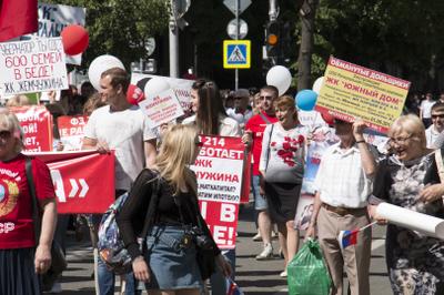 В демонстрации и митинге приняли участие не только краснодарцы, но и делегации из Абинского, Брюховецкого, Выселковского, Каневского, Красноармейского и Усть-Лабинского районов Кубани. В ряды демонстрантов встали и инициативные группы обманутых дольщиков и вкладчиков.