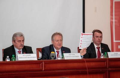 Перед представителями СМИ выступили и ответили на их вопросы: С.П. Обухов – депутат Государственной Думы, член Президиума, секретарь ЦК КПРФ; Н.И.Осадчий – руководитель фракции КПРФ Законодательного Собрания Краснодарского края, член ЦК КПРФ, первый секретарь крайкома партии; А.Н.Тренин – депутат Государственной Думы, член Бюро крайкома КПРФ; П.В.Соколенко – депутат Законодательного Собрания края, член ЦК КПРФ, секретарь краевого Комитета партии; Г.Д.Шабунин – депутат Законодательного Собрания края, председатель краевого профсоюза работников системы жизнеобеспечения, секретарь крайкома КПРФ.