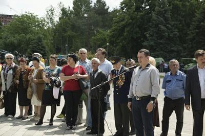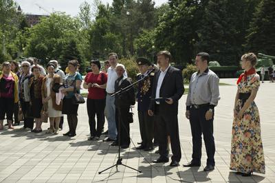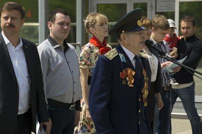 Затем поздравления ребятам произнес полковник армии СССР, летчик боевой авиации, участник Великой Отечественной Войны Ю.Я. Галкин. В своем поздравлении он призвал детей помнить подвиги советских воинов на той войне и быть готовыми Родину защищать.