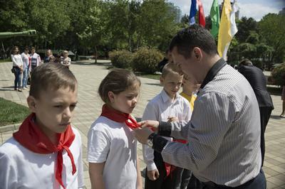 После поздравительных и напутсnвенных слов первого секретаря Краснодарского горкома ЛКСМ РФ, секретаря Краснодарского горкома КПРФ по работе с молодёжьюА.Леоненко в адрес юных пионеров, мероприятие продолжилось экскурсией в Зале Боевой Славы – музею в мемориальном комплексе, посвященному Великой Победе нашего народа над фашистами, а по окончанию музейной экскурсии для юных пионеров было организовано веселое катание на каруселях в Парке Победы, где ребята в неформальной обстановке общались между собой и ближе познакомились друг с другом.