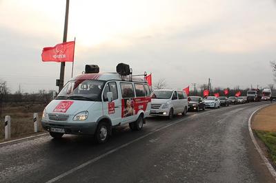Автоколонна коммунистов стартовала из Симферополя, от здания Крымского рескома партии. По ходу движения к ней присоединялись автомобили коммунистов Симферопольского, Первомайского, Красногвардейского, Раздольненского, Джанкойского районов, а также городов Красноперекопска и Армянска. Всего в автопробеге было задействовано 32 автомобиля, украшенных флагами КПРФ и партийной символикой.