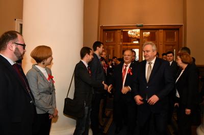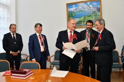 В составе делегации КПРФ во встрече участвовали члены политического руководства партии во главе с Председателем ЦК КПРФ Г.А. Зюгановым, а также первые секретари региональных отделений КПРФ из всех 85 субъектов Российской Федерации.