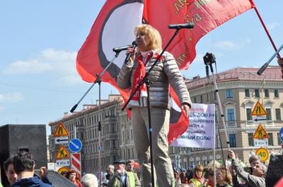 Первый секретарь Санкт-Петербургского горкома КПРФ, член Президиума ЦК КПРФ, руководитель фракции коммунистов в городском парламенте О.А. Ходунова отметила, что Первомай смог объединить людей труда по всему миру под простыми и понятными лозунгами, не теряющими актуальность и по сей день. Она вспомнила, как трудно давались трудящимся кажущиеся сегодня естественными социальные права и гарантии. По убеждению Ольги Ходуновой, действующая власть не только не отражает интересы трудящихся, но и не в состоянии решать проблемы, встающие перед страной и обществом. О.А. Ходунова призвала граждан решительнее говорить «нет» проводимым правительством разрушительным реформам и пенсионному грабежу, активно включаться в протестную деятельность. Она призвала участников митинга активнее сопротивляться новому витку репрессий против коммунистов, развернутых властью на фоне ухудшающейся социально-экономической ситуации в стране. В ряду этих репрессий и нападок на партию Ольга Ходунова назвала попытки судебного преследования Председателя ЦК КПРФ Г.А. Зюганова со стороны олигарха Дерипаски. Единственная альтернатива нынешнему губительному курсу, по словам О.А. Ходуновой, - это незамедлительная отставка праволиберального правительства Медведева и формирование ответственного патриотически настроенного правительства.