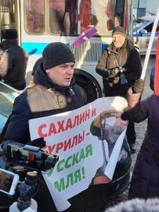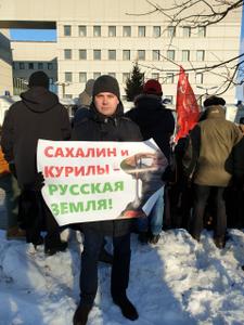Акция КПРФ проходила в день переговоров президента РФ Владимира Путина и премьер-министра Синдзо Абэ по вопросу Курил.