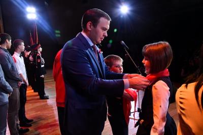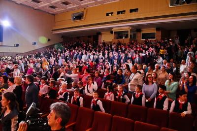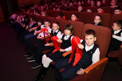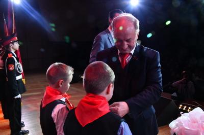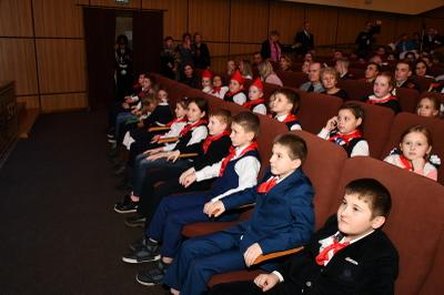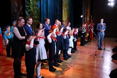 Перед концертом состоялась торжественная церемония вручения комсомольских билетов и приема в пионеры.