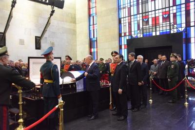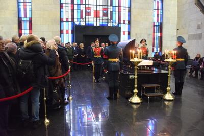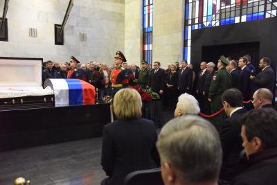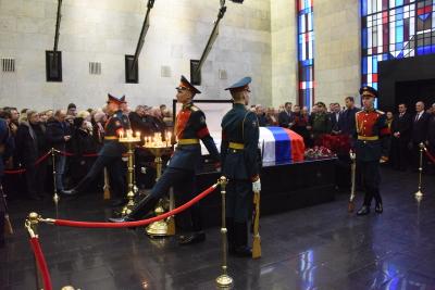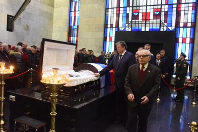 Церемонию проощания вел заместитель Председателя ЦК КПРФ В.И. Кашин. В ней приняла участие делегация представителей Компартии во главе с Председателем ЦК КПРФ Г.А. Зюгановым.