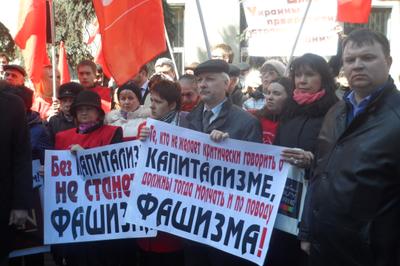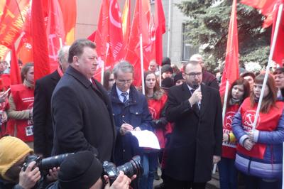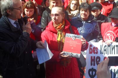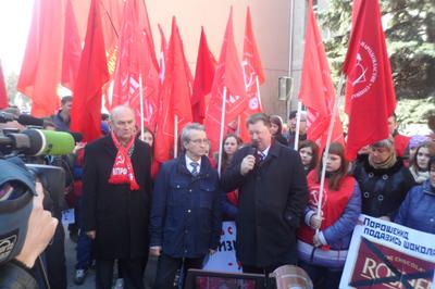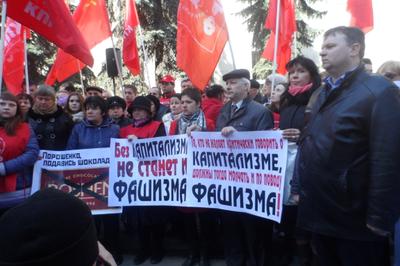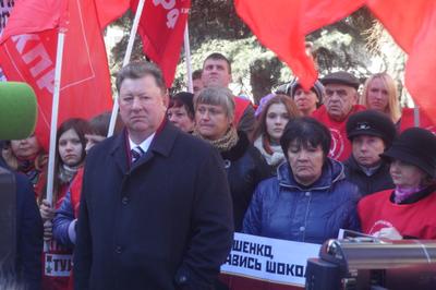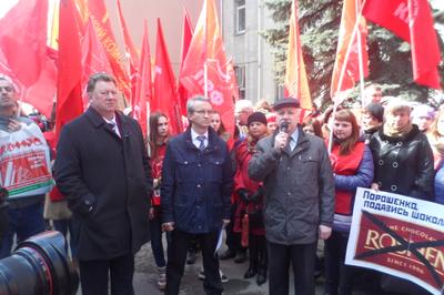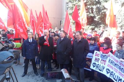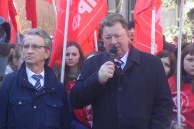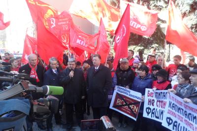 Перед собравшимися выступил заместитель Председателя ЦК КПРФ В.И. Кашин. Он заявил, что кучка бандеровцев, силой захватившая власть в Киеве, сегодня расправляется с неугодными общественными и политическими деятелями с молчаливого согласия мировой общественности. Цинизмом выглядят попытки приравнять Советский союз к фашистской Германии. Владимир Иванович выразил уверенность, что большая часть населения Украины болезненно переживает происходящие в их стране события.