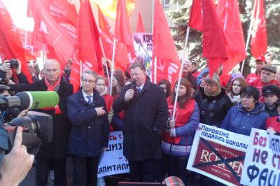 Открыл и вел встречу член ЦК КПРФ В.Р. Родин. Он напомнил, что коммунисты проводят свою акцию накануне годовщины трагических событий в Одессе, где в Доме Профсоюзов фашистами были сожжены заживо десятки людей. Депутат-коммунист сообщил, что и сегодня на Украине ведется антироссийская пропаганда, дезориентирующая жителей республики. В то же время он рассказал о том, как коммунисты в течение года помогали жителям Новороссии, продолжая и сегодня сотрудничать с ДНР и ЛНР.