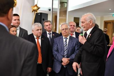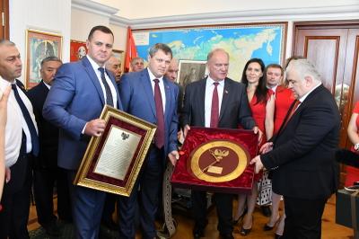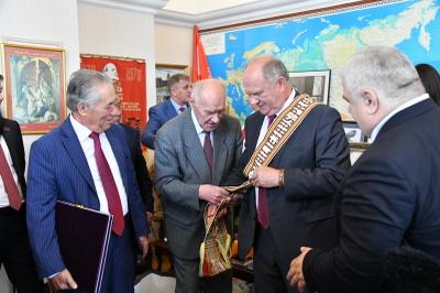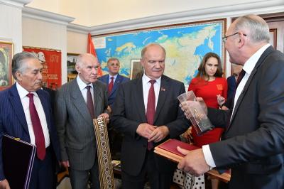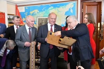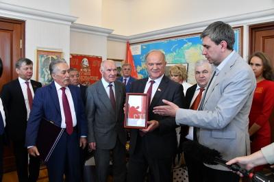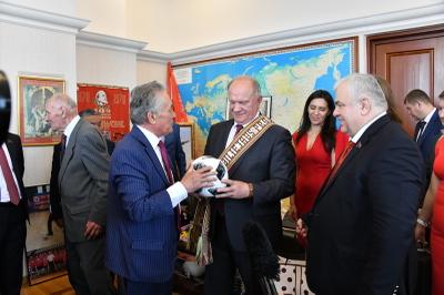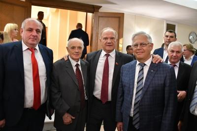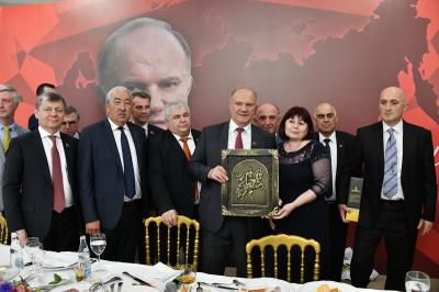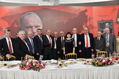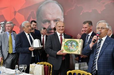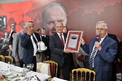После этого участники Пленума посетили торжественное мероприятие, посвященное юбилею Председателя ЦС СКП-КПСС, Председателя ЦК КПРФ Г.А. Зюганова, где в теплой душевной остановке каждый руководитель делегации выполнил поручения своих однопартийцев и передал пламенные приветы, памятные подарки и поздравления лично Геннадию Андреевичу Зюганову.