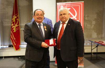По сложившейся доброй традиции перед началом рассмотрения вопросов повестки дня по поручению Председателя ЦС СКП-КПСС, Председателя ЦК КПРФ Зюганова Геннадия Андреевича Первый заместитель Председателя ЦС СКП-КПСС, секретарь ЦК КПРФ Казбек Куцукович Тайсаев вручил награды Центрального Комитета КПРФ – медали «140 лет И.В. Сталину» лидерам братских коммунистических партий — Симоненко Петру Николаевичу, Соколу Алексею Николаевичу, Масалиеву Исхаку Абсаматовичу,Пипия Темуру Иосифовичу, Казаряну Ерджанику Юриковичу, Курбанову Рауфу Муслимовичу, Абдуллоеву Мирочу Саноновичу, Шамину Василию Ивановичу, Бондаренко Надежде Андреевне, Габиевой Ульяне Таймуразовне, Гегии Мурману Константиновичу, Крючкову Георгию Корнеевичу, Георгиевской Виктории Владимировне, Бакун Илоне Сергеевне, Вейсову Аловсату Маиловичу, Мирзоеву Рамазону Зариповичу, Мамаеву Сулайману Шамшиевичу, Литвинову Борису Алексеевичу, Гуменюку Игорю Геннадьевичу, а также представителям Коммунистических партий, работающих в особых условиях.