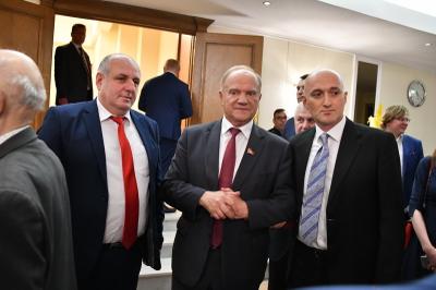 Кроме того, с докладами также выступили: Сокол Алексей Николаевич – Первый секретарь Коммунистической партии Беларуси, Курбанов Рауф Муслимович - Председатель ЦК Коммунистической партии Азербайджана, Казарян Ерджаник Юрикович – и.о. Первого Секретаря ЦК Коммунистической партии Армении, Пипия Темур Иосифович – Председатель Единой коммунистической партии Грузии, Масалиев Исхак Абсаматович – Председатель Коммунистической партии Кыргызстана, Шамин Василий Иванович – член Центрального Совета СКП-КПСС, Бондаренко Надежда Андреевна – Секретарь ЦК ПКП по идеологии, Гл. редактор республиканской газеты "Правда Приднестровья", Абдуллоев Мироч Санонович – Председатель Коммунистической партии Таджикистана, Габиева Ульяна Таймуразовна - Секретарь ЦК Коммунистической партии Республики Южная Осетия, Гегия Мурман Константинович - член Коммунистической партии Республики Абхазия, Литвинов Борис Алексеевич - Первый секретарь ЦК Коммунистической партии Донецкой Народной Республики, Гуменюк Игорь Геннадьевич -Первый секретарь ЦК Коммунистической партии Луганской Народной Республики, Крючков Георгий Корнеевич – член Президиума Коммунистической партии Украины, член Центрального Совета СКП-КПСС, Ермалавичюс Юозас Юозович - Заместитель председателя Центрального Совета СКП-КПСС.