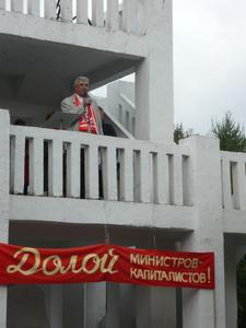 Открыла митинг руководитель областного штаба протестных действий, первый секретарь Мурманского обкома КПРФ, депутат Мурманской областной Думы О.Г. Панина. Она предоставила слово лидеру коммунистов Мурманской области, руководителю фракции КПРФ в Мурманской областной Думе, члену ЦК КПРФ Г.В. Степахно, который охарактеризовал болевые точки сегодняшней жизни в стране и в Мурманской области.