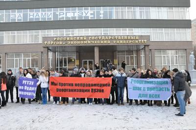 Вот, что требуют студенты. "Мы, студенты РГТЭУ, обращаемся ко всем политическим партиям, общественным движениям, СМИ, ко всем гражданам России. Министр образования Д. Ливанов решил уничтожить наш университет. Тысячи студентов должны будут остаться без высшего образования, если не смогут платить в несколько раз больше. Мы расцениваем это как попытку рейдерского захвата помещений, принадлежащих нашему университету, как циничное попрание наших прав. Поэтому конференция студентов РГТЭУ приняла решение о забастовке. Власть не оставила нам выбора, толкнув нас на этот шаг. Мы готовы на самые решительные действия в рамках закона, вплоть до объявления голодовки. Мы не покинем здание университета, пока не будут выполнены наши требования: - Признать итоги мониторинга деятельности государственных образовательных учреждений в целях оценки эффективности их работы недействительными; - Отменить решение министерства образования о реорганизации Университета как заведомо антиконституционное, коррупционно-мотивированное, направленное на снижение образовательного уровня и введение имущественного ценза на получение высшего образования в России; - Остановить разгром традиционной системы высшей школы; - Сохранить доступность высшего образования; - Наказать виновных в принятии коррупционных решений по сокращению государственных вузов и фальсификации результатов мониторинга; - Немедленная отставка министра образования и науки РФ Д.В. Ливанова".