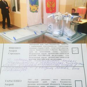 В условиях возможных фальсификаций во втором туре, наша группа в составе первого секретаря Находкинского парткома и меня была брошена на предотвращение возможных махинаций. Мы трижды объехали все избирательные участки, провели разъяснительную работу с нашими ПРГ и ПСГ, председателями УИКов и ТИКа, частью местного руководства. В итоге преимущество кандидата от ЕР сохранилось, но стало значительно меньше. Кандидат от КПРФ Андрей Ищенко прибавил на разных участках от 2 до 5 раз (!).