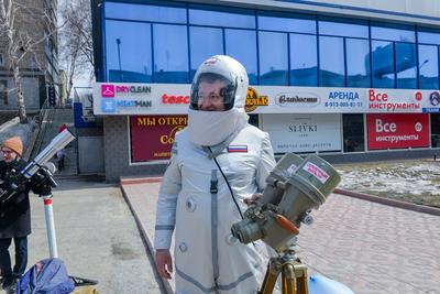 12 апреля станцию метро «Гагаринская» было видно из далека. Здесь первый полет человека в космос в Новосибирске встречают с размахом: большой планетарий организовал астрономическую площадку. Любой новосибирец мог посмотреть из профессионального телескопа на солнце и языки пламени, которые больше Земли в несколько раз.