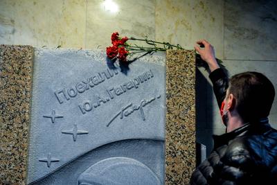 На станции метро «Гагаринская» установили барельеф в честь 60-летия полета первого человека в космос. На нем изображен портрет Юрия Гагарина в скафандре и его знаменитая фраза: «Поехали!». Коммунисты возложили цветы в честь юбилея космического прорыва.