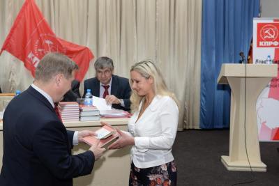 Далее были подведены итоги соцсоревнования между местными и первичными отделениями КПРФ Новосибирской области. Почетная грамота и переходящее Красное Знамя за первое место было вручено Обскому местному отделению КПРФ, первый секретарь Наталия Бессонова.