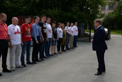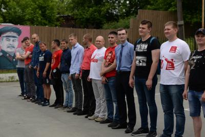 Наступил торжественный момент — построение, командир автопробега, первый секретарь Калининского райкома КПРФ Алексей Манохин выстраивает шеренгу, докладывает о готовности руководству областного комитета — второму секретарю Новосибирского областного комитета КПРФ Ренату Сулейманову, секретарю по организационной работе Алексею Русакову.