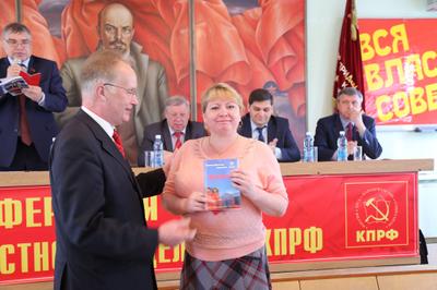 Открыл Конференцию первый секретарь Омского областного комитета КПРФ Александр Кравец. После вступительного слова и принятия регламента работы Конференции он выполнил, наверное, самую приятную функцию, которая выпадает на его долю, - вручил партийные билет коммунистам, недавно вступившим в КПРФ. На этот раз «именинником» оказалось Любинское местное отделение, которое направило для получения вручения им в торжественной обстановке партбилетов шестерых «новобранцев». Еще одна приятная обязанность первого секретаря на таких форумах – вручение наград наиболее заслуженным коммунистам. Секретарь Усть-Ишимского местного отделения Людмила Кузьмина получила из рук Александра Кравца Почетную грамоту, подписанную Геннадием Андреевичем Зюгановым, и ценный подарок.