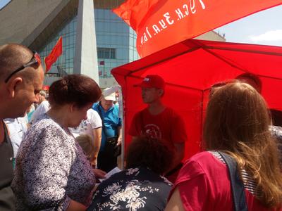 Акция на площади им. Блинова длилась два часа. Всё это время кипела работа в красной палатке, где собирали подписи против пенсионной реформы и за отставку правительства. С начала июля в подписных листах собрано уже более десяти тысяч протестных отзывов омичей.