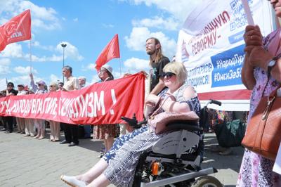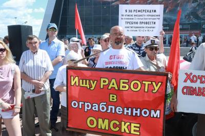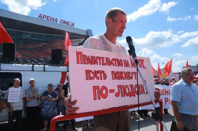 Это уже четвертая крупная акция протеста в Омске в течение июля, не считая регулярных пикетов, которые проводят местные отделения КПРФ. Сегодня на нее вышли активисты левых организаций. Не только члены КПРФ, но и «Левый фронт», НПСР, представители профсоюзов, входящих в «Конфедерацию труда», Общественного городского совета.