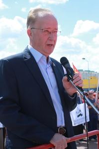 Открыл митинг второй секретарь Омского обкома КПРФ Андрей Алехин. Он предоставил слово первому секретарю обкома КПРФ, депутату Государственной думы РФ Александру Кравцу.