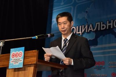 Советник-посланник Посольства КНР в РФ Хань Вэй в своем докладе рассказал об успехах развития хозяйства в Китае, о росте благосостояния граждан страны и о проводимой политике урбанизации.