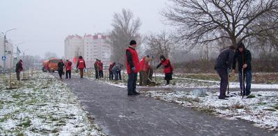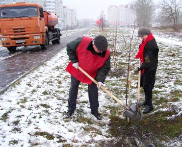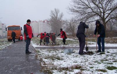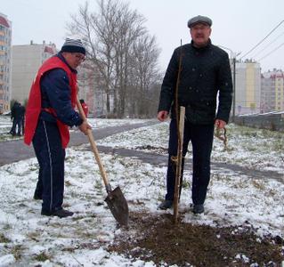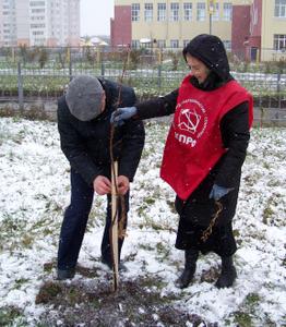 Сегодня коммунисты Советского района г. Орла посадили 50 деревьев на аллее у школы №50.