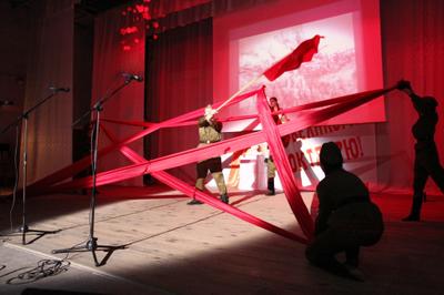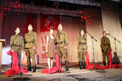 Концерт начался с выступления артистов театра-студии «Диалог», которую исполнили театрализованную композицию под песню «Священная война», затем прочитали стихи о войне. А песню «День Победы» зал в едином порыве слушал стоя.