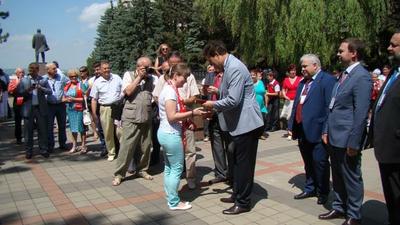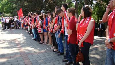 Утром 5 июня у мемориала воинской славы «Вечный огонь» в центре столицы Северо-Кавказского федерального округа более пятидесяти активистов, недавно вступивших в КПРФ и ЛКСМ, получили партийные и комсомольские билеты из рук старших товарищей по партии – секретарей и членов ЦК КПРФ, депутатов Госдумы России.