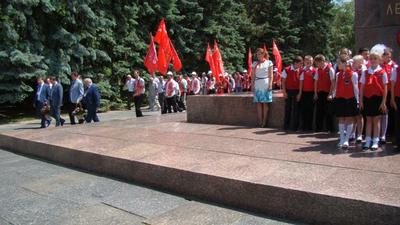 Цветы в это утро были возложены и к мемориалу «Вечный огонь». Сюда, к посту №1 в самом сердце Пятигорска, с традиционными речёвками промаршировали также и пионеры. Красные галстуки юных ленинцев и их знамёна придали особую торжественность моменту.