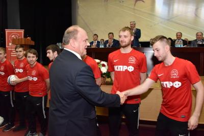 Вначале заседания состоялось традиционное награждение орденами «За заслуги перед партией» ветеранов и активистов партии. В числе награжденных – тренер молодежной команды КПРФ по мини-футболу Михаил Маркин. Футболисты этой команды в полном составе прибыли на съезд. Накануне они выиграли кубок России, который был передан на хранение Председателю ЦК КПРФ Г.А. Зюганову.