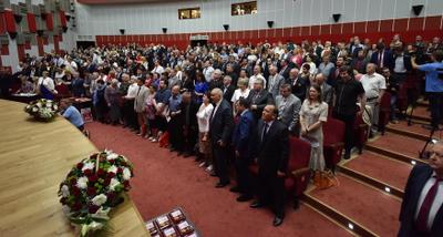 На церемонии открытия прозвучал гимн СССР. Всего в работе съезда принимают участие около 700 человек, в том числе 92 депутата Госдумы, 106 депутатов региональных законодательных собраний, 226 депутатов местного самоуправления и глав исполнительной власти.