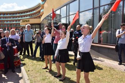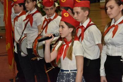 Затем с приветствием к участникам съезда обратились пионеры из отряда имени Зои Космодемьянской (город Подольск).
