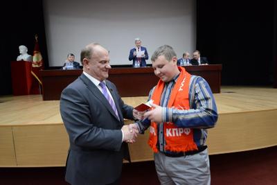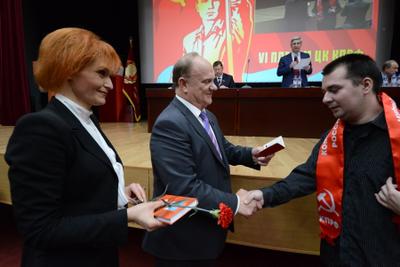 Вначале состоялось вручение партийных билетов группе молодых коммунистов. Ряды Компартии пополнились в основном представителями рабочего класса и технической интеллигенции из Москвы, Московской и Рязанской областей. Вручал партийные билеты лидер российских коммунистов Г.А. Зюганов.