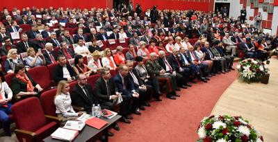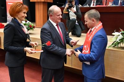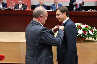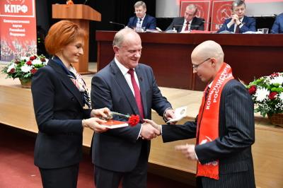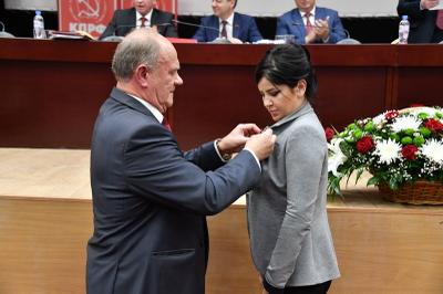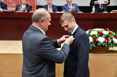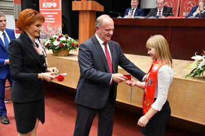 Затем состоялась традиционная церемония вручения партийных и комсомольских билетов. Г.А. Зюганов рассказал, что в прошедшем году в нашу партию вступило 12 тысяч человек. В основном, это молодежь. Лидер Компартии также вручил памятные ордена ЦК КПРФ «100 лет Ленинскому Комсомолу» группе товарищей.