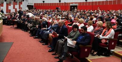 В работе Пленума принимают участие более 600 человек. В начале заседания его участники почтили минутой молчания память погибших в городе Керчи во время недавней трагедии.
