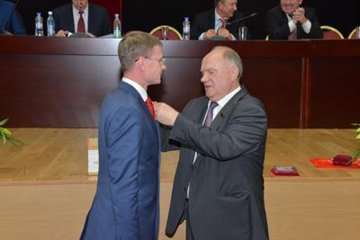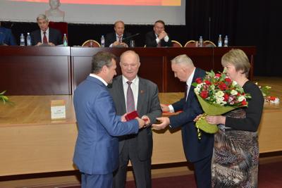 Затем Г.А. Зюганов вручил награды и памятные подарки отметившим свои юбилеи товарищам.