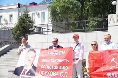 В Приморском крае прошел митинг против незаконного снятия кандидатов от КПРФ Сергея Обухова и Вадима Соловьева