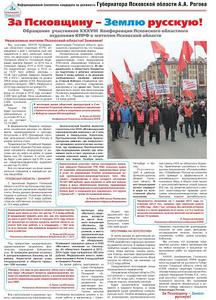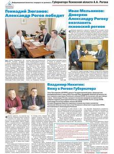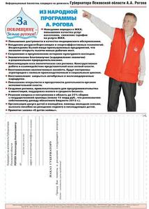 На псковской улице Текстильной на торговой площадке агитаторы раздавали информационный бюллетень, листовки и плакаты кандидата на должность Губернатора Псковской области, члена ЦК КПРФ, первого секретаря Псковского обкома КПРФ Александра Рогова, вестник депутат Государственной Думы ФС РФ Владимира Никитина «Набат». В них выдержки из народной программы кандидата на должность Губернатора Александра Рогова, критические заметки в адрес администрации Псковской области, предложение о наказах будущему Губернатору, реалии жизни.