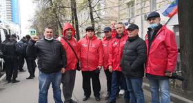 Вероятно, запланировав его на праздничный день, власть рассчитывала, что число москвичей, выражающих свою поддержку Николаю Платошкину, окажется более скромным, чем обычно. Но она очевидно просчиталась: задолго до начала заседания на Донской улице, рядом со зданием Гагаринского суда, собралось более 200 человек. Значительную часть из них составляли представители Московского городского отделения КПРФ, буквально окрасив Донскую улицу в красный цвет.